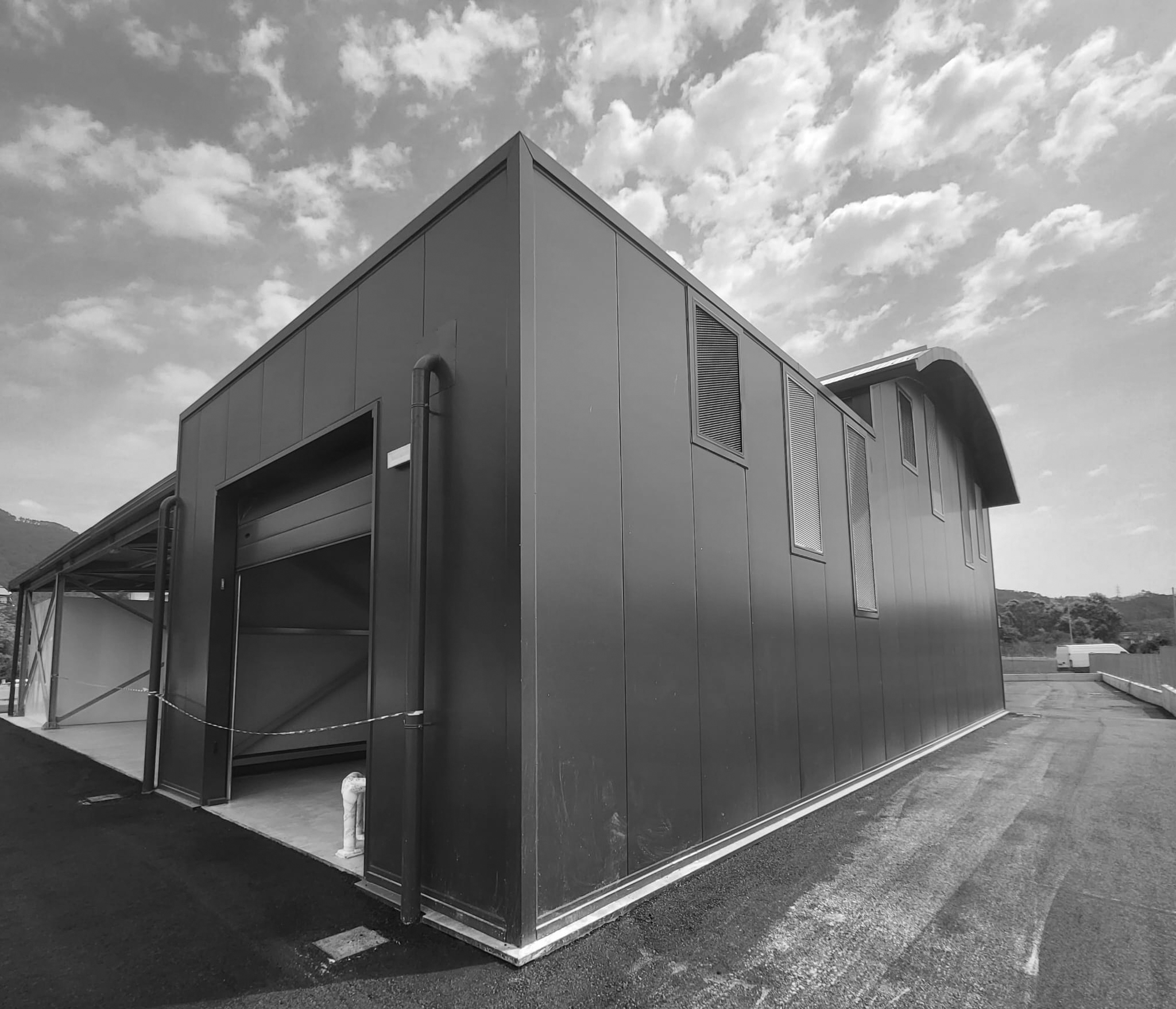 Il progetto nasce da un vero e proprio restyling del complesso artigianale sede “ex Marimarmi” importante azienda del settore della lavorazione di marmi. Le strutture originarie saranno riqualificate fornendo al complesso un alto profilo hi-tech con rivestimenti in pannelli di lamiera elettro-verniciata e inserti in policarbonato semi-trasparente.